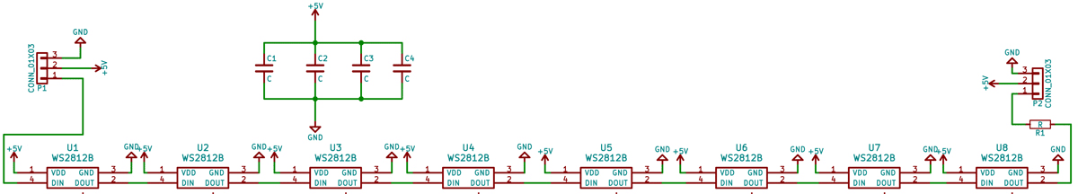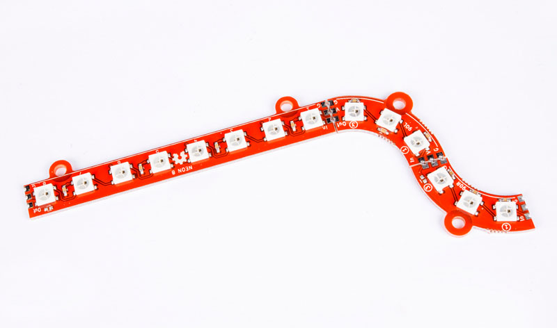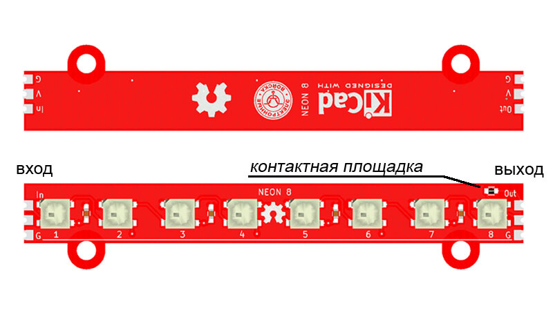 Это печатная плата размером 85 x 10 мм. оснащенная восемью светодиодами WS2812b и двумя монтажными отверстиями. Линейка входит в состав проекта Неон разработанного для легкого проектирования ваших светодиодных замыслов.