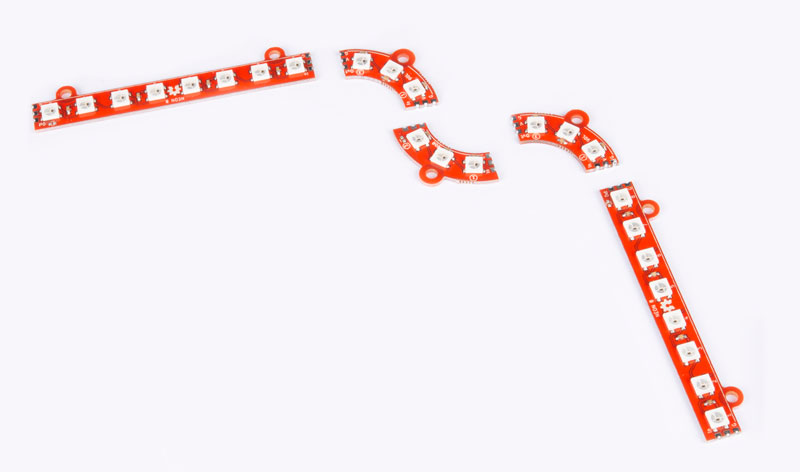 Кроме линейки "Неон 8" в проект входят платы левого "Неон 90L" и правого "Неон 90R" поворотов (приобретуются отдельно). На поворотах установлены по три светодиода WS2812b.